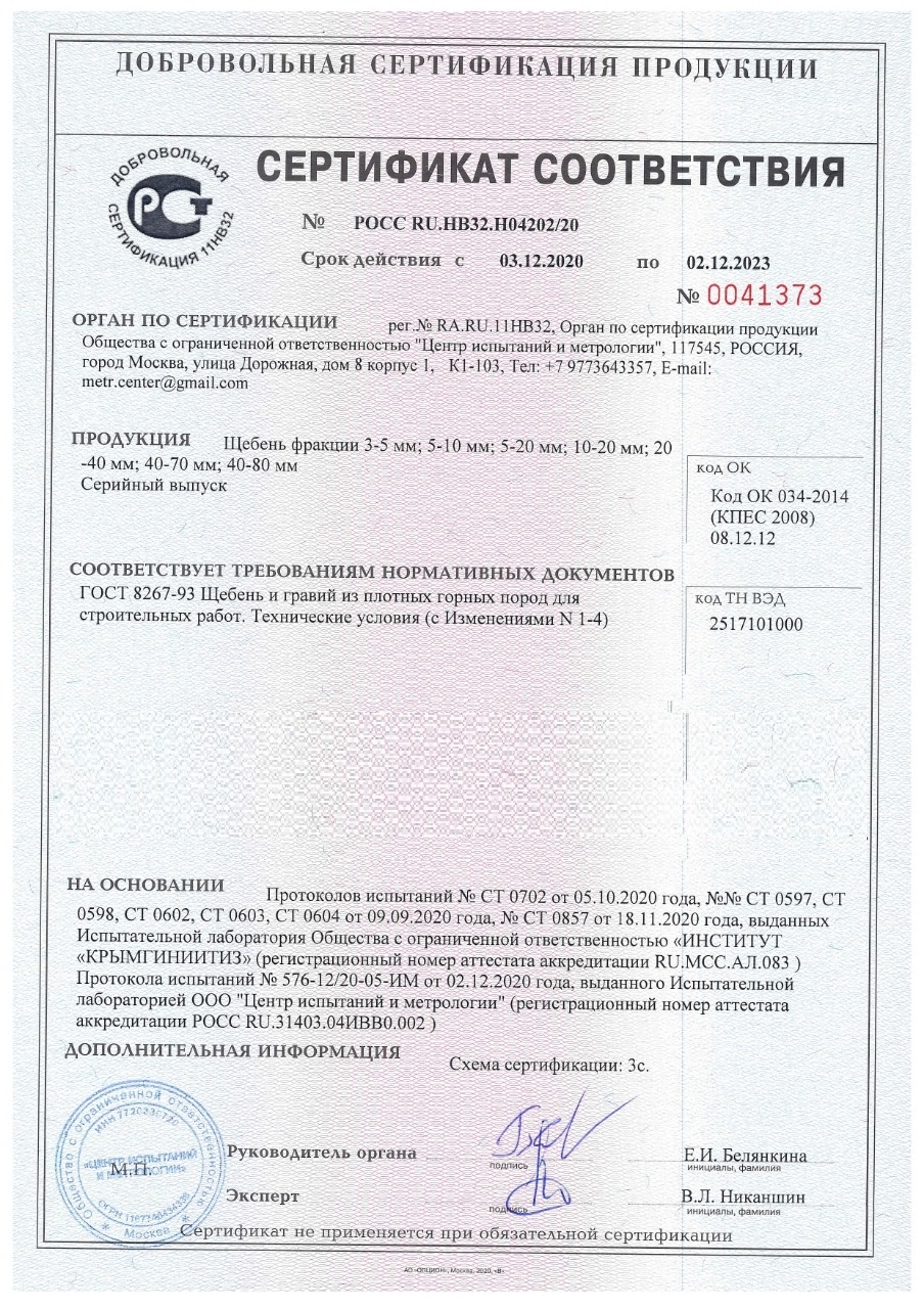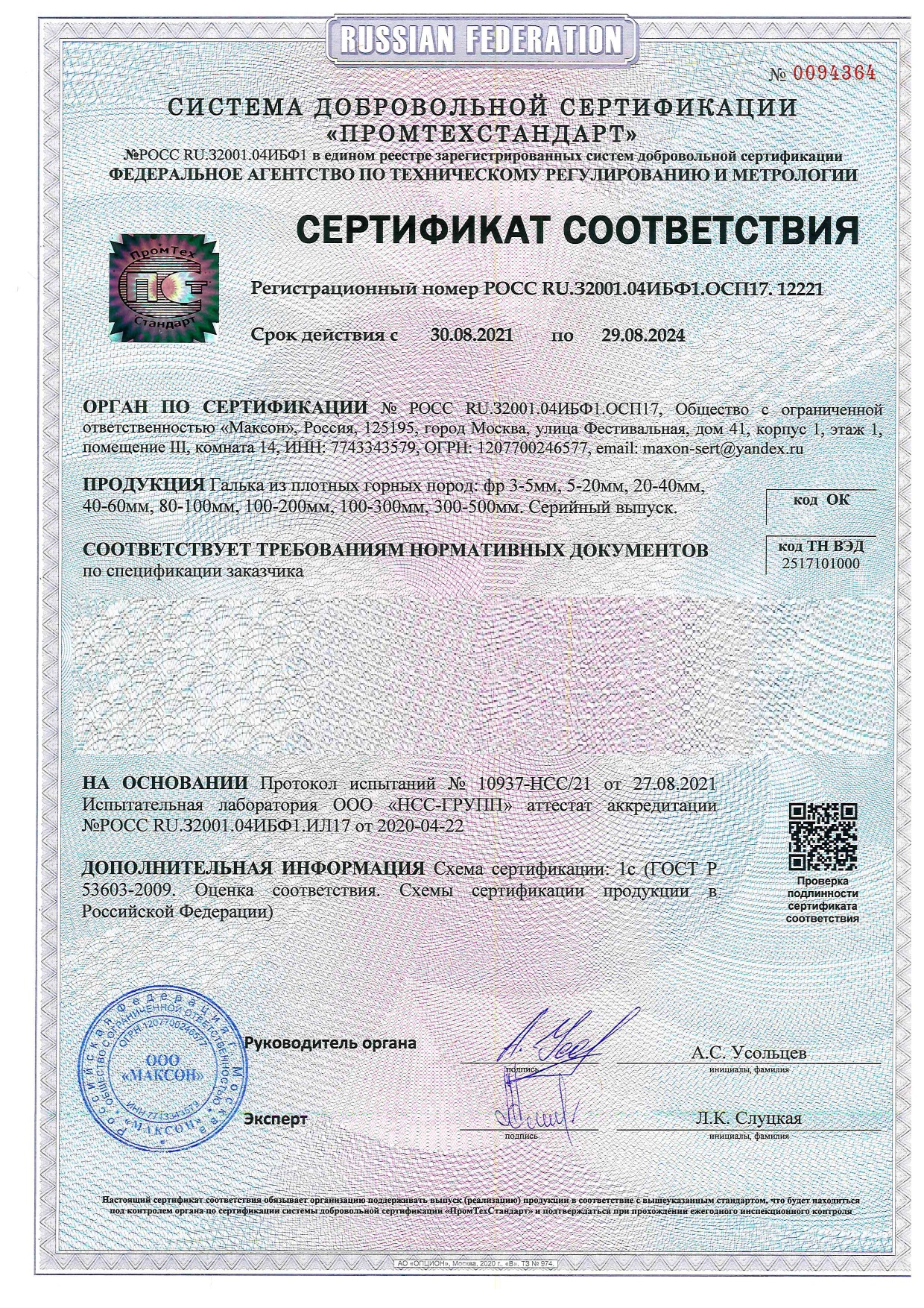 Сертификат соответствия – документ, подтверждающий соответствие продукции требованиям качества и безопасности, установленными для нее действующими стандартами и правилами. Наш камень, который Вы сможете заказать с доставкой в Одинцово , обладает всеми необходимыми документами для реализации и при необходимости могут быть предоставлены все необходимые подтверждающие документы при поставке.
